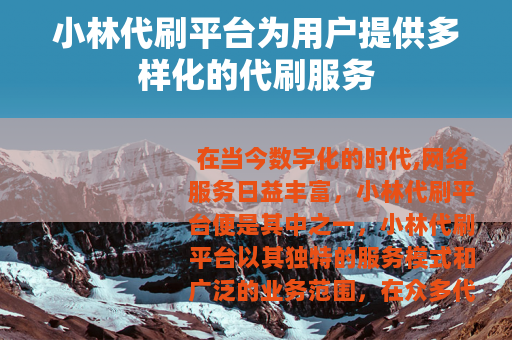 在当今数字化的时代,网络服务日益丰富,小林代刷平台便是其中之一,小林代刷平台以其独特的服务模式和广泛的业务范围,在众多代刷平台中逐渐崭露头角。