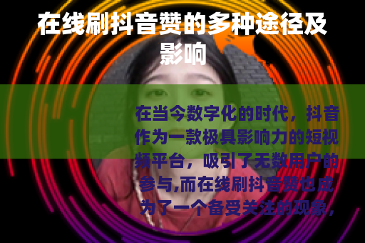 在当今数字化的时代,抖音作为一款极具影响力的短视频平台,吸引了无数用户的参与,而在线刷抖音赞也成为了一个备受关注的现象。
