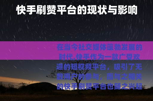 在当今社交媒体蓬勃发展的时代,快手作为一款广受欢迎的短视频平台,吸引了无数用户的参与,而与之相关的快手刷赞平台也随之兴起,成为了一个备受关注的现象。