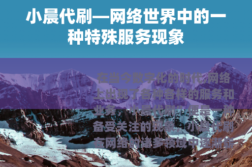 在当今数字化的时代,网络上出现了各种各样的服务和业务,小晨代刷”便是一种备受关注的现象,小晨代刷在网络的诸多领域中逐渐崭露头角,为不少用户提供了特定的便利。