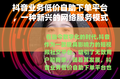 在当今数字化的时代,抖音作为一款极具影响力的短视频社交平台,吸引了无数用户和商家,随着其发展,抖音业务低价自助下单平台也应运而生,为众多有需求的人提供了便利。