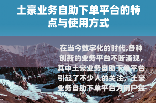 在当今数字化的时代,各种创新的业务平台不断涌现,其中土豪业务自助下单平台引起了不少人的关注。