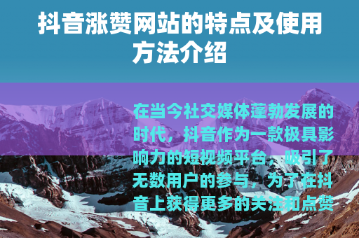 在当今社交媒体蓬勃发展的时代,抖音作为一款极具影响力的短视频平台,吸引了无数用户的参与,为了在抖音上获得更多的关注和点赞,不少人开始关注抖音涨赞网站。