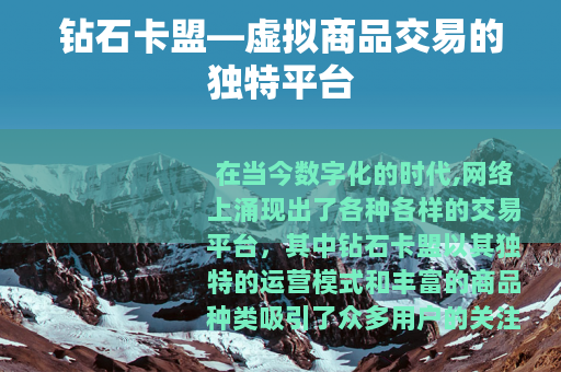 在当今数字化的时代,网络上涌现出了各种各样的交易平台,其中钻石卡盟以其独特的运营模式和丰富的商品种类吸引了众多用户的关注。