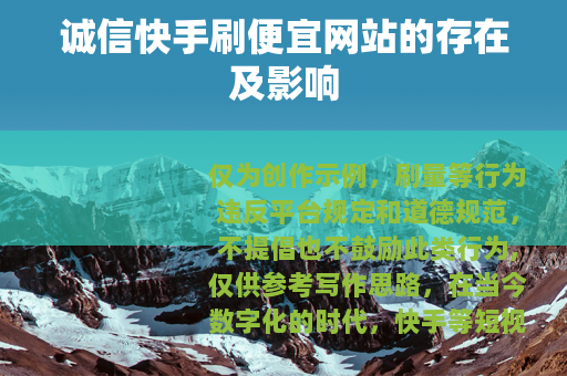 在当今数字化的时代,快手等短视频平台成为了人们展示自我和获取信息的重要场所,随着其影响力的不断扩大,一些与之相关的产业也应运而生,其中就包括声称提供诚信快手刷便宜服务的网站。
