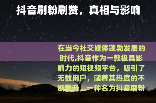 在当今社交媒体蓬勃发展的时代,抖音作为一款极具影响力的短视频平台,吸引了无数用户,随着其热度的不断攀升,一种名为抖音刷粉刷赞网的现象也悄然兴起。