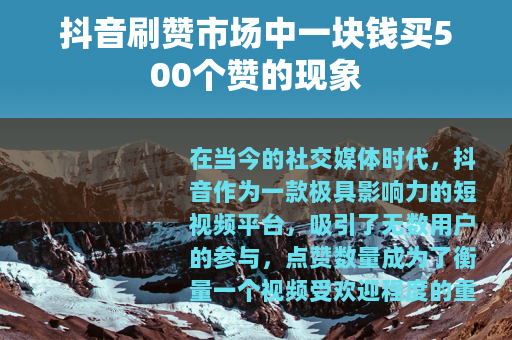 在当今的社交媒体时代,抖音作为一款极具影响力的短视频平台,吸引了无数用户的参与,点赞数量成为了衡量一个视频受欢迎程度的重要指标之一,在这样的背景下,出现了一种引人注目的现象,那就是在一些渠道声称可以一块钱买500个赞。