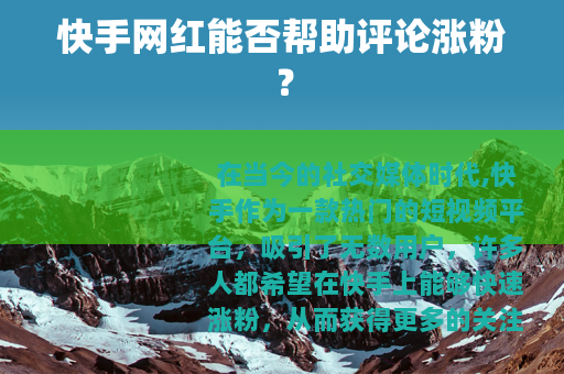 在当今的社交媒体时代,快手作为一款热门的短视频平台,吸引了无数用户,许多人都希望在快手上能够快速涨粉,从而获得更多的关注和机会,而快手网红的影响力巨大,这就让不少人产生了疑问:快手网红给评论涨粉吗?