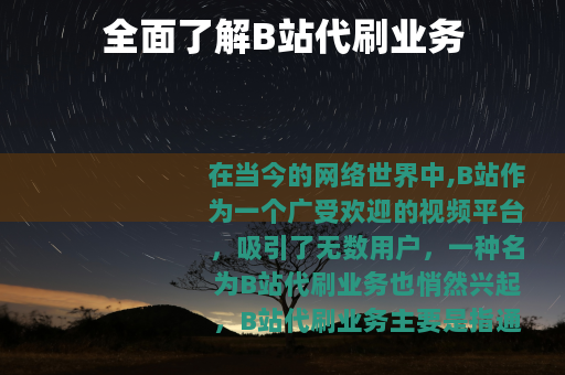 在当今的网络世界中,B站作为一个广受欢迎的视频平台,吸引了无数用户,一种名为B站代刷业务也悄然兴起。