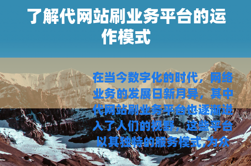 在当今数字化的时代,网络业务的发展日新月异,其中代网站刷业务平台也逐渐进入了人们的视野,这些平台以其独特的服务模式,为众多网站所有者和网络从业者提供了一种看似便捷的业务拓展途径。