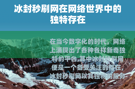 在当今数字化的时代,网络上涌现出了各种各样新奇独特的平台,其中冰封秒刷网便是一个备受关注的存在。