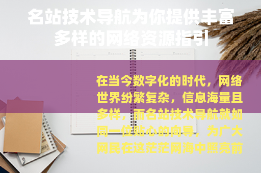在当今数字化的时代,网络世界纷繁复杂,信息海量且多样,而名站技术导航就如同一位贴心的向导,为广大网民在这茫茫网海中照亮前行的道路,提供便捷而丰富的资源指引。