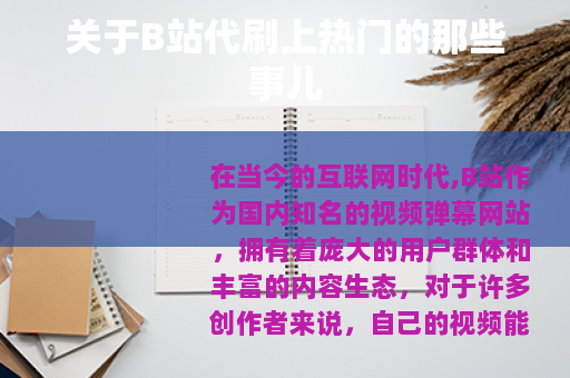 在当今的互联网时代,B站作为国内知名的视频弹幕网站,拥有着庞大的用户群体和丰富的内容生态,对于许多创作者来说,自己的视频能够上热门无疑是一件非常值得期待的事情,因为这意味着更多的曝光、流量和关注,随着需求的增长,一种名为“B站代刷上热门”的服务也悄然兴起。