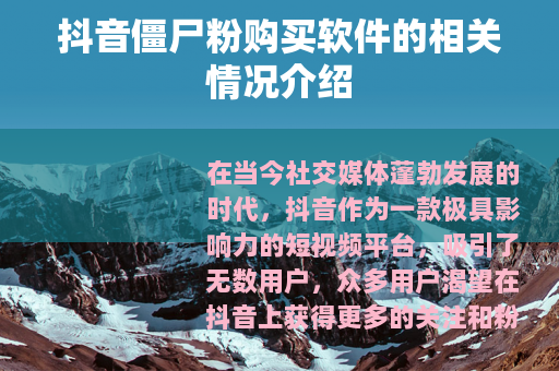 在当今社交媒体蓬勃发展的时代,抖音作为一款极具影响力的短视频平台,吸引了无数用户,众多用户渴望在抖音上获得更多的关注和粉丝,以提升自己的影响力和知名度,而在这个过程中,一些所谓的抖音僵尸粉购买软件也应运而生。