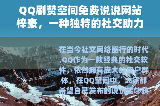 在当今社交网络盛行的时代,QQ作为一款经典的社交软件,依然拥有庞大的用户群体,在QQ空间中,大家都希望自己发布的说说能够获得更多的点赞和关注,以此来展现自己的人气和社交魅力,而梓豪所代表的QQ刷赞空间免费说说网站,便在这样的需求下应运而生,为众多QQ用户提供了一种别样的社交助力途径。