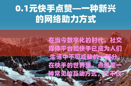 在当今数字化的时代,社交媒体平台如快手已成为人们生活中不可或缺的一部分,在快手的世界里,点赞是一种常见的互动方式,它不仅能让创作者感受到观众的喜爱与支持,还能在一定程度上提升作品的热度,而0.1元快手点赞这种现象也随之悄然兴起。