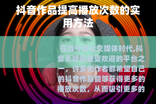 在当今的社交媒体时代,抖音无疑是最受欢迎的平台之一,许多创作者都希望自己的抖音作品能够获得更多的播放次数,从而吸引更多的关注和粉丝,以下是一些可以帮助你提高抖音作品播放次数的有效方法。 是关键,确保你的作品具有独特性和吸引力,可以从自身的兴趣、特长或当下热门话题中寻找灵感,创作一些能引起观众共鸣的内容,如果你擅长烹饪,那么制作一些美味又新奇的食谱视频,或者分享一些独特的烹饪技巧,都可能会吸引大量美食爱好者的关注,要注意视频的趣味性和故事性,让观众在观看过程中能够产生情感上的连接,这样他们更有可能完整地看完你的视频,并且愿意分享给其他人。