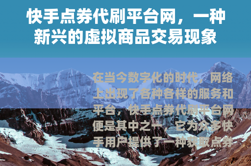 在当今数字化的时代,网络上出现了各种各样的服务和平台,快手点券代刷平台网便是其中之一,它为众多快手用户提供了一种获取点券的途径,在一定程度上满足了用户对于虚拟货币的需求。