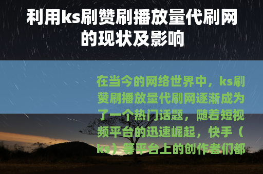 在当今的网络世界中,ks刷赞刷播放量代刷网逐渐成为了一个热门话题,随着短视频平台的迅速崛起,快手(ks)等平台上的创作者们都希望自己的作品能够获得更多的关注和流量,而刷赞刷播放量的代刷网便应运而生。