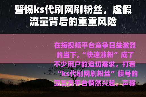 在短视频平台竞争日益激烈的当下,“快速涨粉”成了不少用户的迫切需求,打着“ks代刷网刷粉丝”旗号的第三方平台悄然兴起,声称只需支付少量费用就能轻松获得成千上万的粉丝,这种看似“捷径”的操作,背后却隐藏着账号安全、平台处罚、法律风险等多重隐患,值得每一位ks用户警惕。