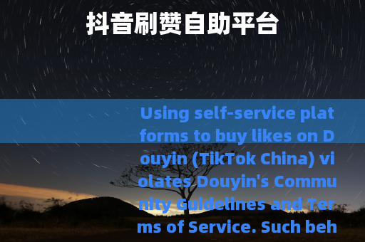 Using self-service platforms to buy likes on Douyin (TikTok China) violates Douyin's Community Guidelines and Terms of Service. Such behavior not only undermines the fairness of the platform's content ecosystem but also brings serious risks to your account: