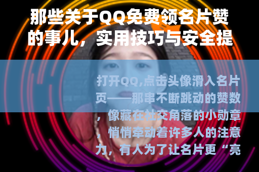 打开QQ,点击头像滑入名片页——那串不断跳动的赞数,像藏在社交角落的小勋章,悄悄牵动着许多人的注意力,有人为了让名片更“亮眼”,有人想通过赞数找到同频的朋友,“免费领名片赞”便成了不少用户的搜索关键词,今天就来聊聊,怎么安全、靠谱地get这些赞,以及哪些坑要避开。