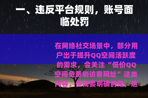 在网络社交场景中,部分用户出于提升QQ空间活跃度的需求,会关注“低价QQ空间免费刷访客网址”这类内容,但需要明确的是,这类工具和服务不仅可能违反平台规则,还潜藏着多重安全隐患,不建议大家尝试使用。 QQ空间作为腾讯旗下的社交平台,其用户协议明确禁止通过非官方渠道刷取访客量、点赞量等数据,使用所谓的“刷访客网址”,本质是利用技术手段制造虚假互动,一旦被平台检测到,账号可能面临警告、限制功能甚至永久封禁的处罚,反而得不偿失。