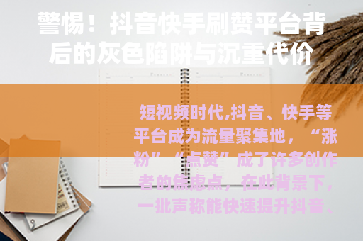 短视频时代,抖音、快手等平台成为流量聚集地,“涨粉”“点赞”成了许多创作者的焦虑点,在此背景下,一批声称能快速提升抖音、快手点赞量、粉丝数的“刷赞平台”悄然兴起,它们打着“低成本上热门”“真人互动秒到账”的旗号,吸引着急于求成的用户——但这看似便捷的“捷径”,实则是布满风险的灰色陷阱。