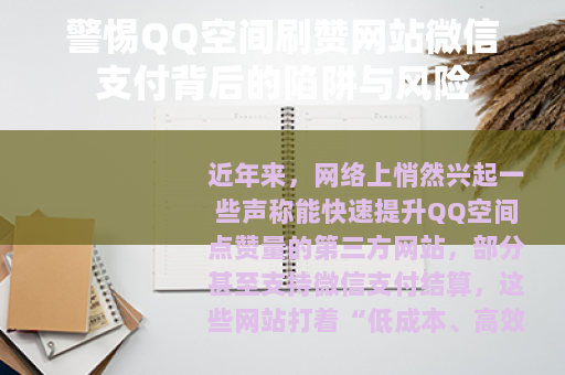 近年来,网络上悄然兴起一些声称能快速提升QQ空间点赞量的第三方网站,部分甚至支持微信支付结算,这些网站打着“低成本、高效果”的旗号吸引用户,但看似便捷的服务背后,却隐藏着违反平台规则、个人信息泄露、财产诈骗等多重风险,值得每一位用户高度警惕。