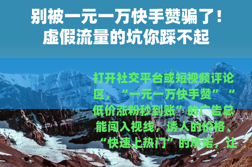 打开社交平台或短视频评论区,“一元一万快手赞”“低价涨粉秒到账”的广告总能闯入视线,诱人的价格、“快速上热门”的承诺,让不少急于在快手立足的新手心动不已,但你知道吗?这些看似“性价比超高”的服务,背后藏着的是一个个深不见底的陷阱。