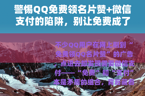 不少QQ用户在网上刷到“免费领QQ名片赞”的广告,点进去却发现需要微信支付——“免费”和“支付”本是矛盾的组合,背后藏着的往往是精心设计的骗局,很多年轻人为了让自己的QQ名片更“热闹”,容易被这种噱头吸引,结果不仅没拿到想要的赞,还可能遭遇钱财损失、信息泄露等问题,今天就来拆解这类骗局的套路,帮大家避开风险。