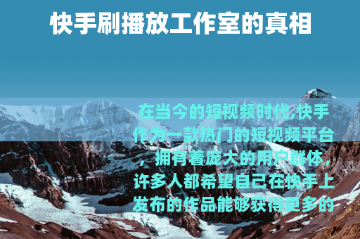 在当今的短视频时代,快手作为一款热门的短视频平台,拥有着庞大的用户群体,许多人都希望自己在快手上发布的作品能够获得更多的播放量,从而提高自己的知名度和影响力,在这样的需求下,快手刷播放工作室应运而生。