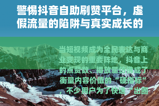当短视频成为全民表达与商业变现的重要阵地,抖音上的点赞数、播放量仿佛成了衡量内容价值的“硬指标”,不少用户为了快速“出圈”,将目光投向了声称能“一键涨赞”的“抖音自助刷赞平台”,这些看似便捷的工具背后,藏着的却是违规风险、账号危机与价值泡沫。