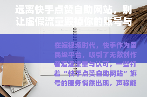 在短视频时代,快手作为国民级平台,吸引了无数创作者追逐流量与认可,一些打着“快手点赞自助网站”旗号的服务悄然出现,声称能快速提升视频点赞数、播放量,甚至涨粉——但这些看似“捷径”的背后,藏着重重风险与陷阱,更违背了平台规则和内容创作的本质。