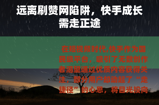 远离刷赞陷阱,坚守创作初心,才能在快手的舞台上收获真正的掌声与未来。