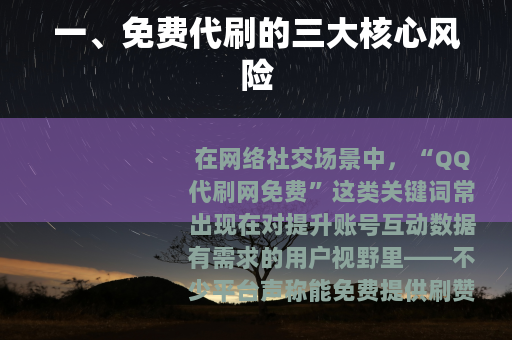 在网络社交场景中,“QQ代刷网免费”这类关键词常出现在对提升账号互动数据有需求的用户视野里——不少平台声称能免费提供刷赞、刷粉丝、刷空间访问量等服务,看似能快速满足用户“提升存在感”的需求,但背后却藏着诸多不容忽视的风险与陷阱。