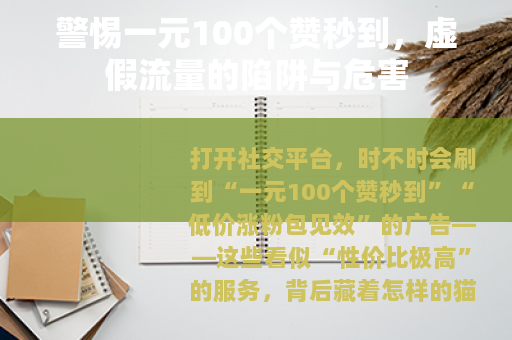 打开社交平台,时不时会刷到“一元100个赞秒到”“低价涨粉包见效”的广告——这些看似“性价比极高”的服务,背后藏着怎样的猫腻?又会给用户带来哪些风险?