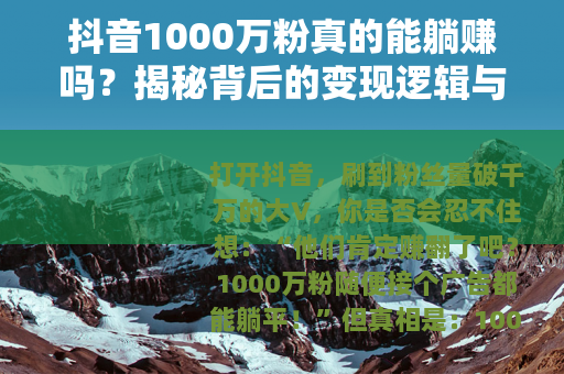 抖音1000万粉能赚钱吗?答案是“能”,但要看你怎么赚。