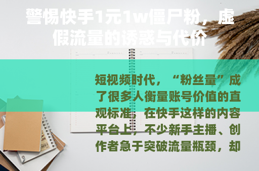 短视频时代,“粉丝量”成了很多人衡量账号价值的直观标准,在快手这样的内容平台上,不少新手主播、创作者急于突破流量瓶颈,却被“1元1w僵尸粉”的低价广告绊住了脚——看似“性价比极高”的数字游戏,背后藏着的却是账号毁灭、生态破坏的深坑。