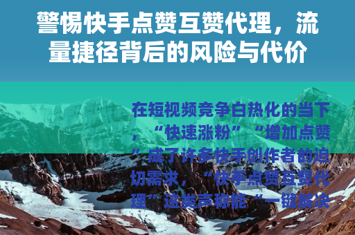 “快手点赞互赞代理”看似能快速解决流量焦虑,实则是饮鸩止渴,短视频行业的本质,永远是“内容为王”——只有靠真实的价值吸引用户,才能建立长久的信任,实现账号的可持续发展。
