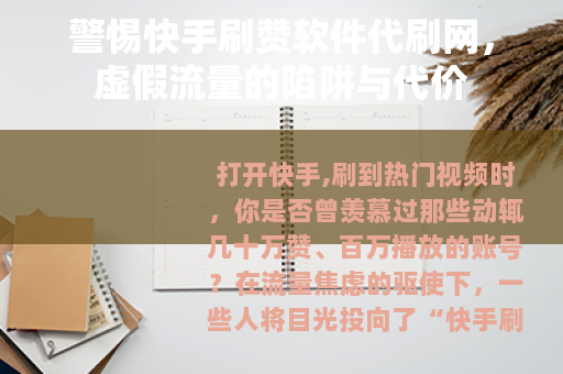 打开快手,刷到热门视频时,你是否曾羡慕过那些动辄几十万赞、百万播放的账号?在流量焦虑的驱使下,一些人将目光投向了“快手刷赞软件”“代刷网”,试图通过付费购买虚假点赞、粉丝来快速“涨粉”“上热门”,这种看似捷径的操作,背后藏着重重风险,不仅违背平台规则,更可能让你付出沉重代价。