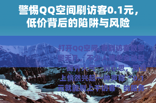 打开QQ空间,看到访客数寥寥无几,不少人难免会动起“提升人气”的心思,网络上悄然兴起一种声称“0.1元就能刷上千访客”的服务,打着“低价高效”的旗号吸引了不少用户尝试,这种看似“性价比极高”的操作,背后却藏着诸多不为人知的风险,甚至可能让你得不偿失。