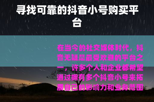 在当今的社交媒体时代,抖音无疑是最受欢迎的平台之一,许多个人和企业都希望通过拥有多个抖音小号来拓展自己的影响力和业务范围,寻找一个正规的抖音小号买号平台就变得至关重要。