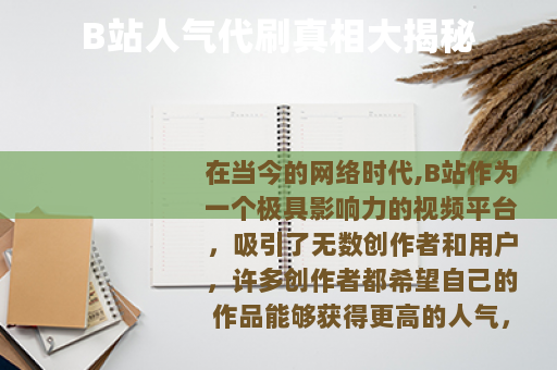 在当今的网络时代,B站作为一个极具影响力的视频平台,吸引了无数创作者和用户,许多创作者都希望自己的作品能够获得更高的人气,从而得到更多的关注和认可,在这种需求下,一种名为B站人气代刷的服务悄然兴起。