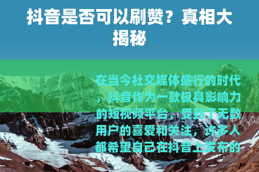 在当今社交媒体盛行的时代,抖音作为一款极具影响力的短视频平台,受到了无数用户的喜爱和关注,许多人都希望自己在抖音上发布的作品能够获得更多的点赞,从而提高曝光度和影响力,一个问题便应运而生:抖音可以刷赞么?