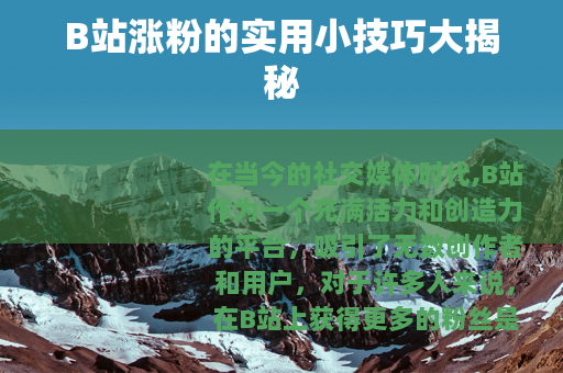 在当今的社交媒体时代,B站作为一个充满活力和创造力的平台,吸引了无数创作者和用户,对于许多人来说,在B站上获得更多的粉丝是他们努力的目标之一,就来为大家分享一个B站涨粉的小技巧。