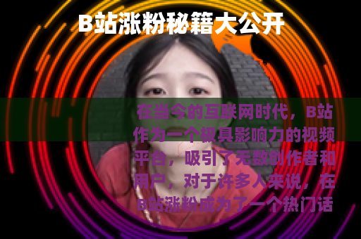 在当今的互联网时代,B站作为一个极具影响力的视频平台,吸引了无数创作者和用户,对于许多人来说,在B站涨粉成为了一个热门话题,大家都希望能够在这个充满活力的平台上拥有自己的一席之地,收获大量粉丝的关注和喜爱,怎么在B站涨粉呢?以下是一些实用的方法。