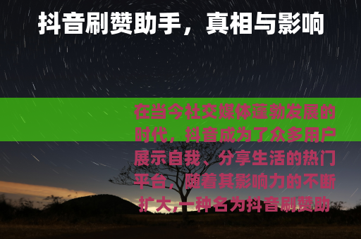 在当今社交媒体蓬勃发展的时代,抖音成为了众多用户展示自我、分享生活的热门平台,随着其影响力的不断扩大,一种名为抖音刷赞助手的工具也逐渐进入了人们的视野。