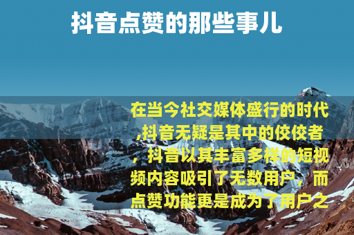 在当今社交媒体盛行的时代,抖音无疑是其中的佼佼者,抖音以其丰富多样的短视频内容吸引了无数用户,而点赞功能更是成为了用户之间互动的重要方式之一。