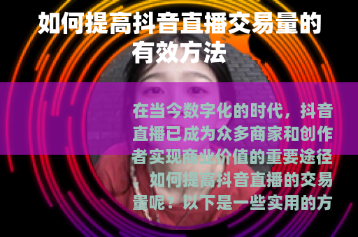 在当今数字化的时代,抖音直播已成为众多商家和创作者实现商业价值的重要途径,如何提高抖音直播的交易量呢?以下是一些实用的方法。